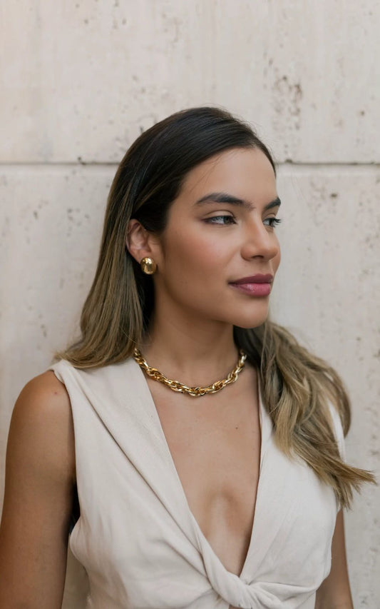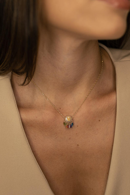 Colar Choker Mão de Hamsá com Pedras e Pérola Dourado