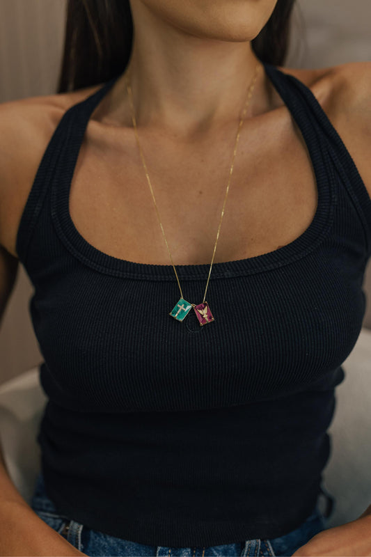 Colar Escapulário Olho Grego e Mão Hamsá Dourado