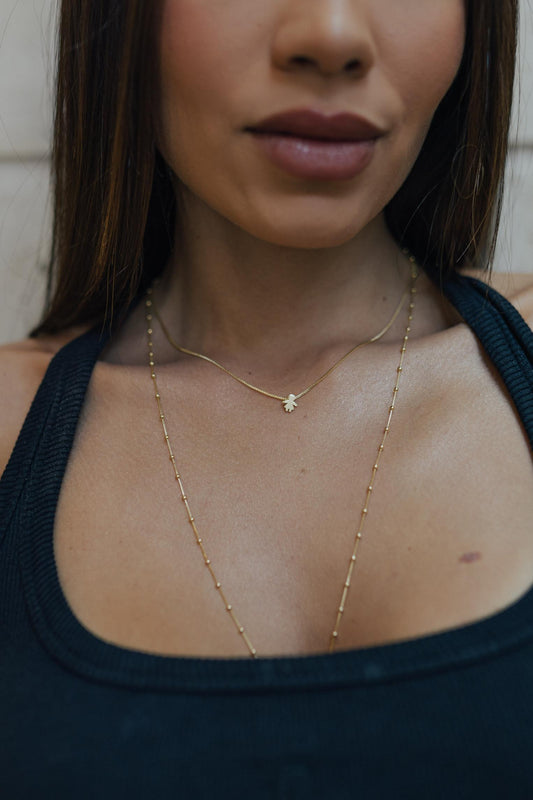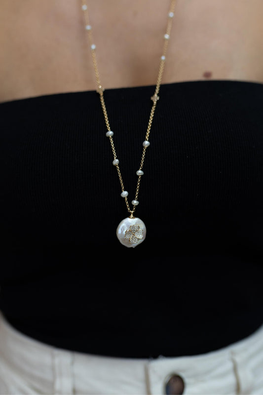 Colar Longo Madrepérola Trevo Cravejado Dourado