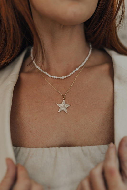 EsgotadoColar Pêndulo Pérola Natural Dourado