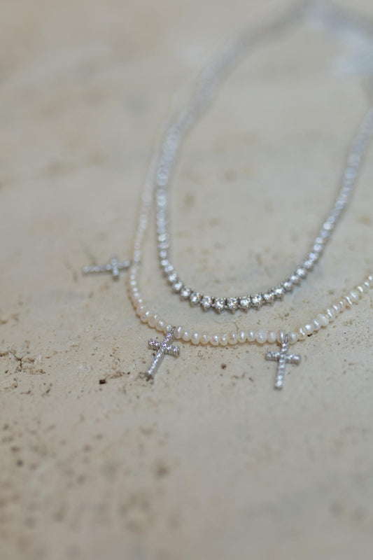 Colar Riviera 3 pontas 45cm Ródio Branco