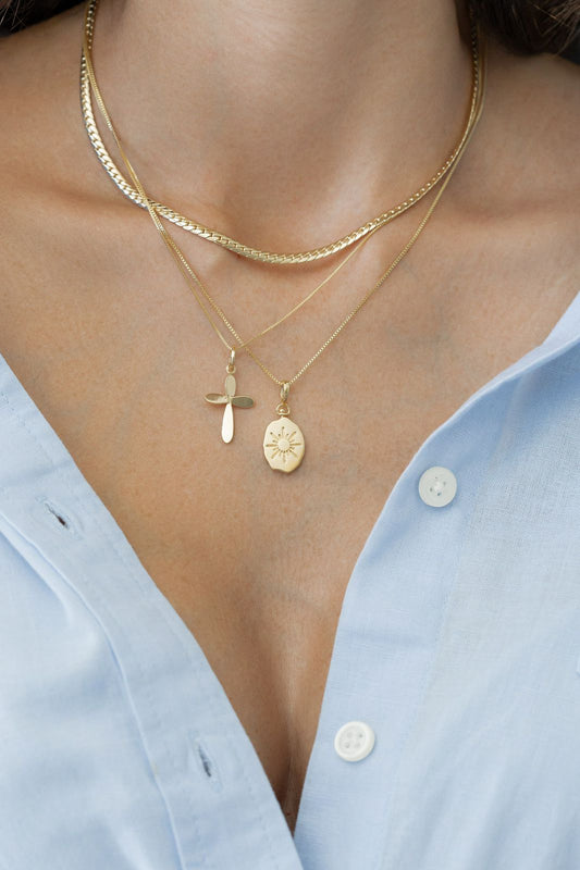 Colar Escapulário Madrepérola Azul Ródio Branco
