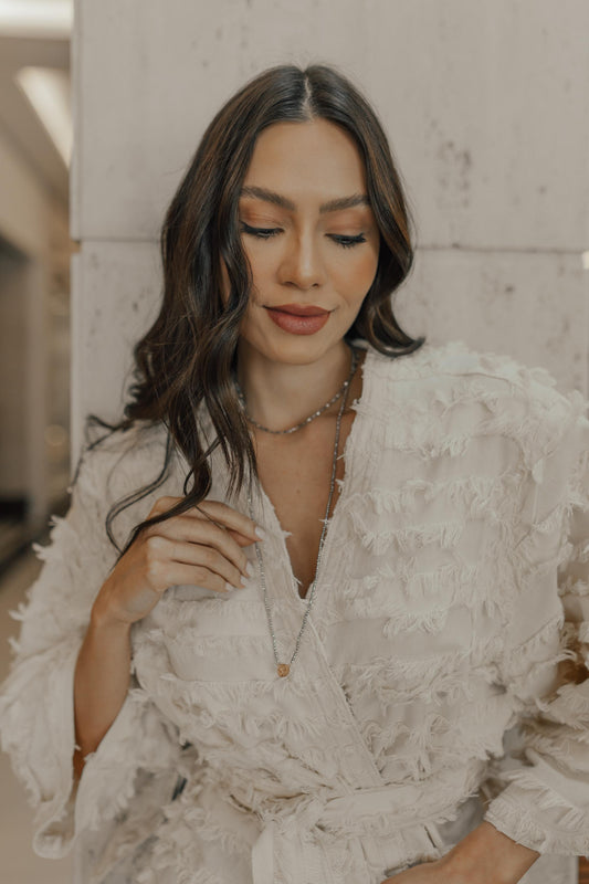 Colar com 3 Pingentes Redondo Baguete Ródio Branco