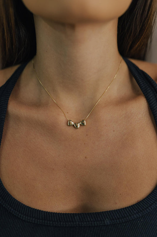 Colar 3 Corações Liso Dourado