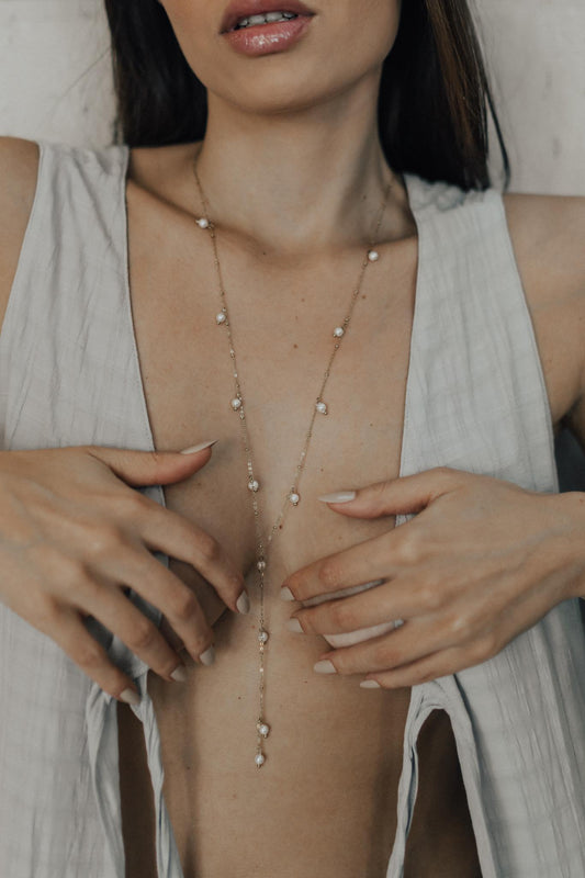 Colar Fio de Nylon Pontos de Luz Dourado e Ródio Branco