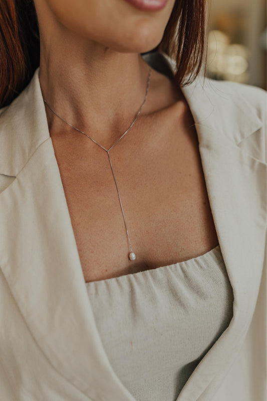 Colar Fio de Nylon Pontos de Luz Ródio Branco