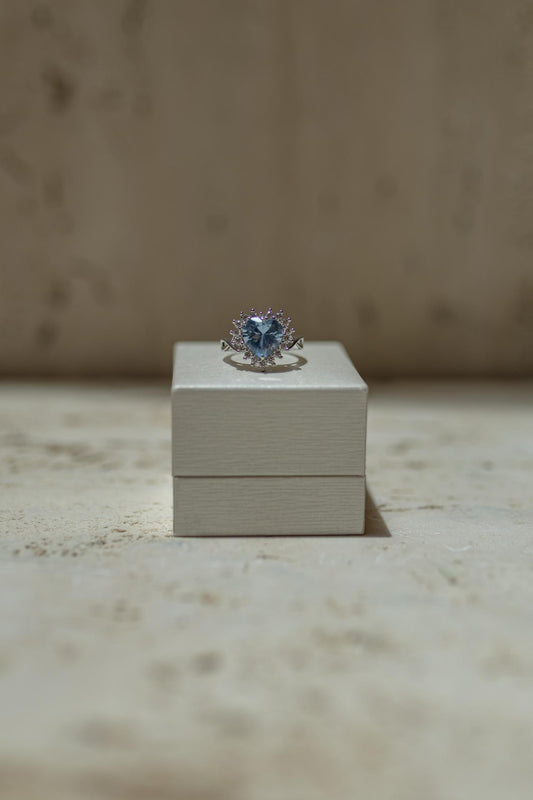 Anel Coração Aquamarine Ródio Branco