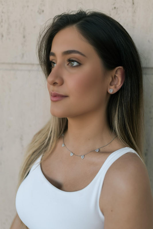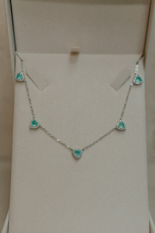 Colar Choker 5 Corações Turmalina Fusion Ródio Branco