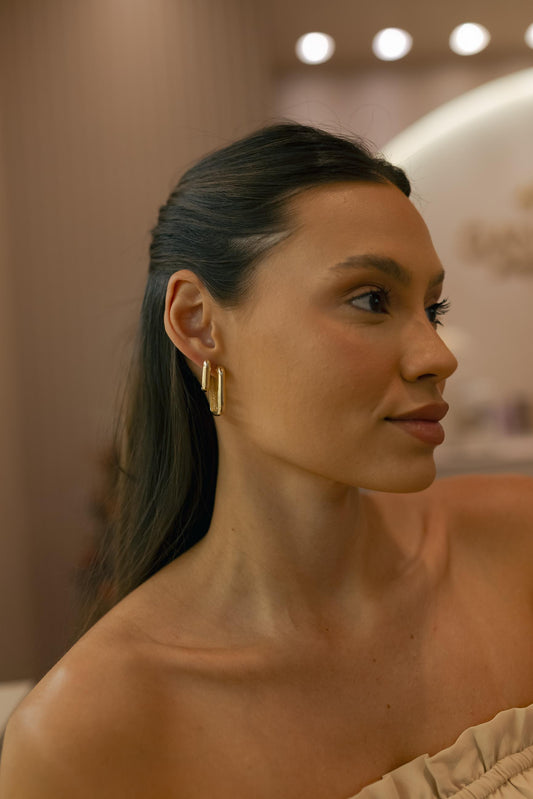 Brinco Argola Retangular Dourado Tamanho G