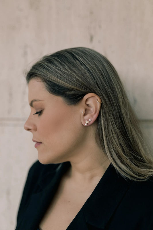 Brinco Ear Hook 8 Fileiras Cravejado Ródio Branco