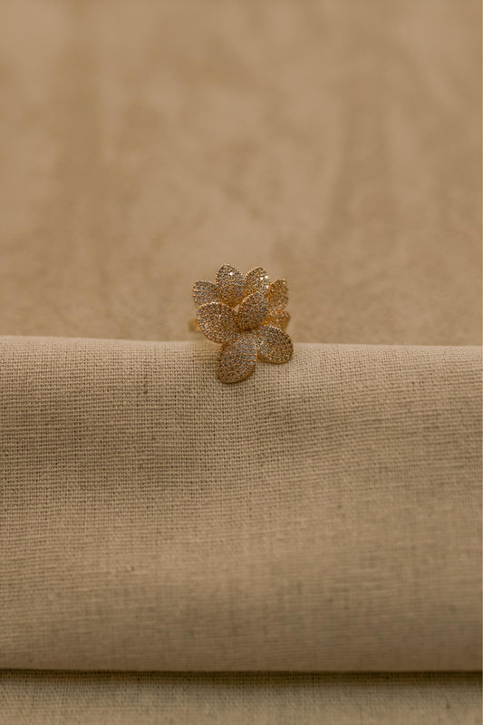 Brinco Flor 4 Pétalas Cravejado Dourado
