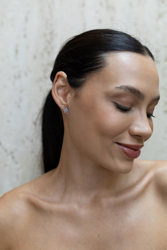 Brinco Flor 4 Pétalas Cravejado Ródio Branco