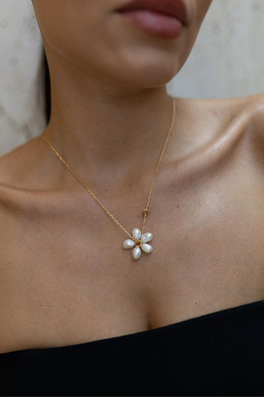 Colar Flor 4 Pétalas Cravejado Ródio Branco