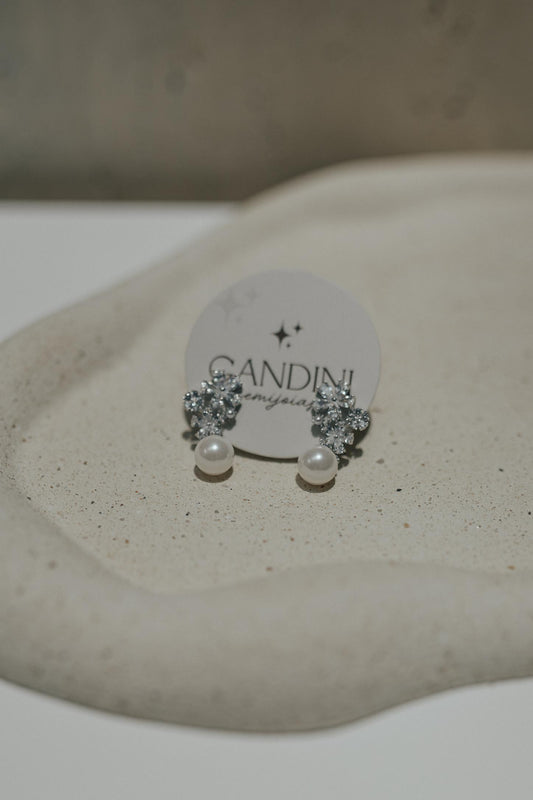 Brinco Mini Camélia Com Pérola Ródio Branco