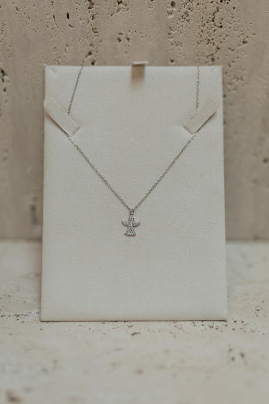 Colar Anjo da Guarda Cravejado Prata 925 Ródio Branco