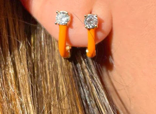 BLACK FRIDAYBrinco Argola Laranja com Ponto de Luz Dourado