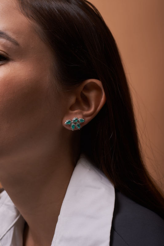 Brinco Ear Cuff Mini Gotas Turmalina Fusion Cravejadas Ródio Branco