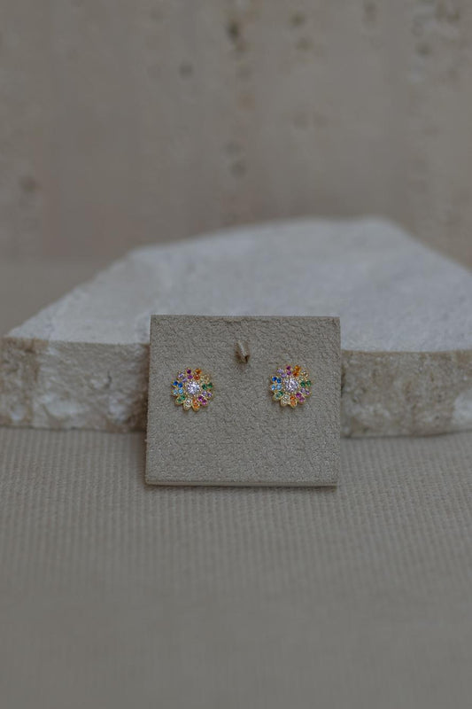 BLACK FRIDAYBrinco Flor Rainbow Prata 925 Dourado