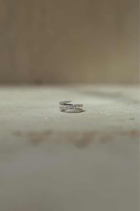 Anel Duplo Moissanite Glam 4x6mm Prata 925 Ródio Branco