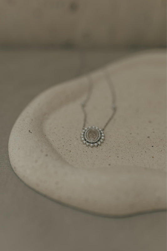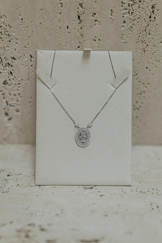 Colar Medalha Cristais Nossa Senhora das Graças Moissanite Prata 925