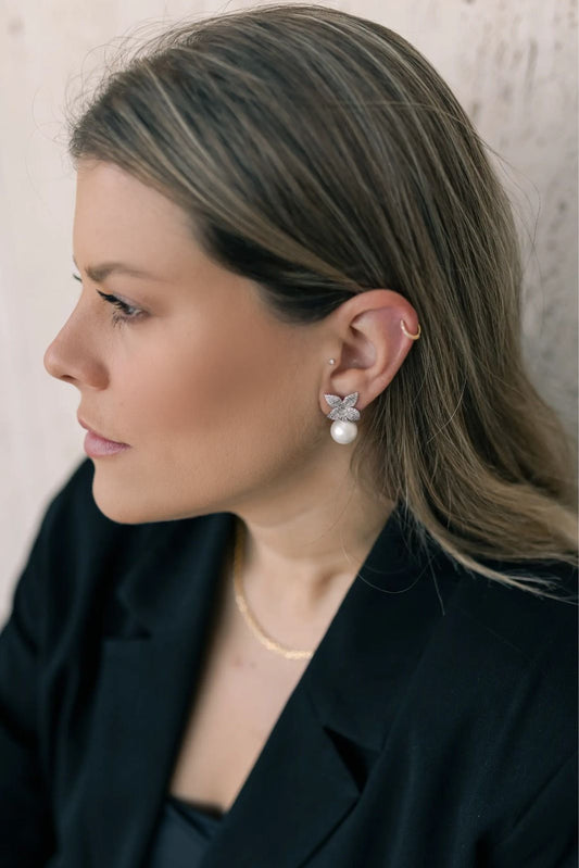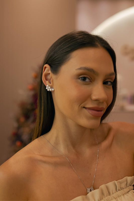 Brinco Pérola Brigde Ródio Branco