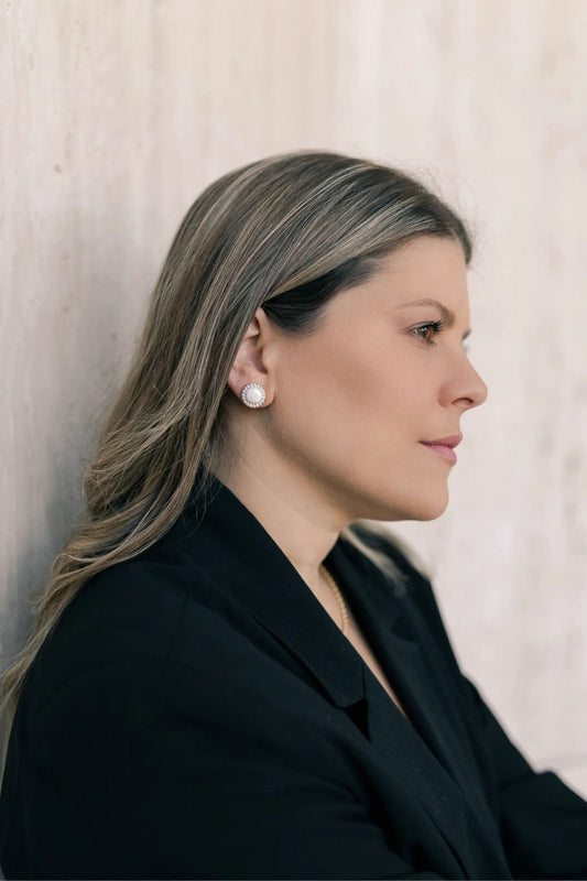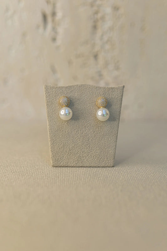 Brinco Meia Esfera Cravejado com Pérola Dourado