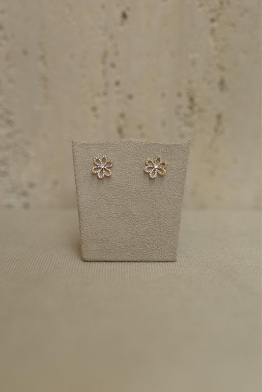 Brinco Flor Vazada Cristal Dourado