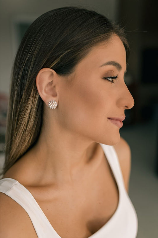 Brinco Meia Esfera de Micropérolas Ródio Branco