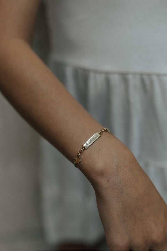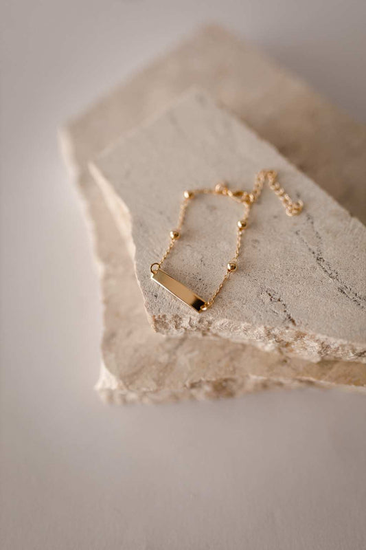 Bracelete Ponto de Luz e Letra Cravejada Dourado