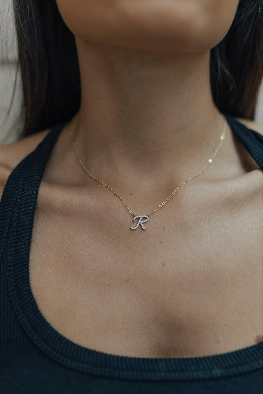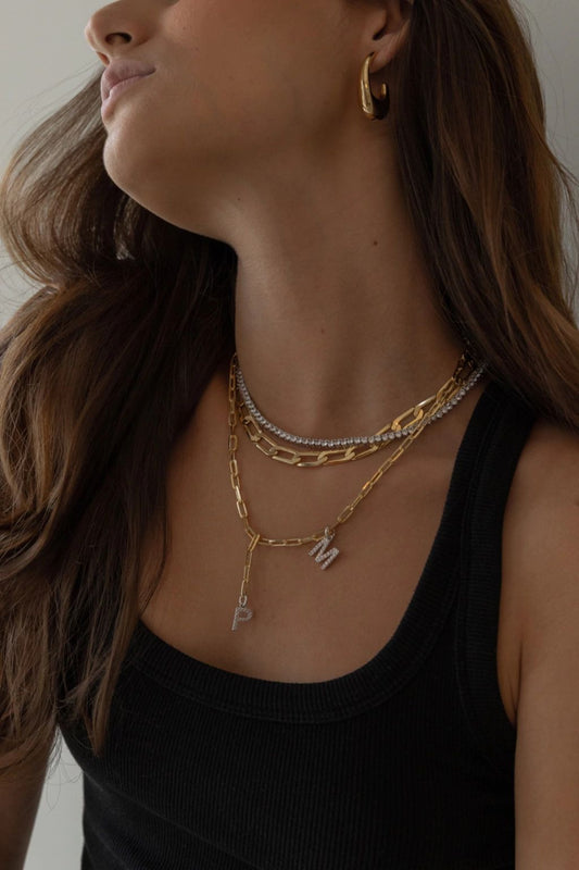 Colar Elos Figaro Inicial Cravejada Ródio Branco