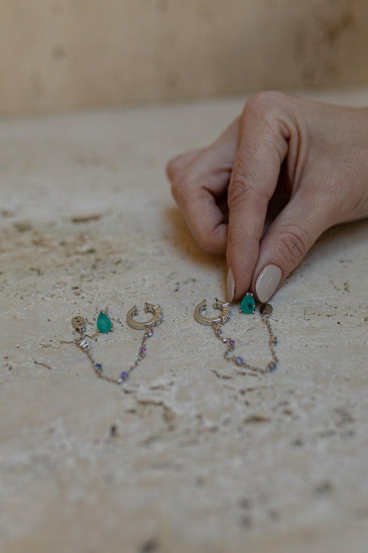 Brinco 2 em 1 Gota Turmalina Fusion Piercing Fake Dourado