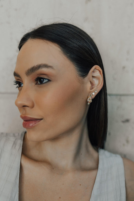 Brinco Ear Cuff Mini Gotas Cravejadas Ródio Branco