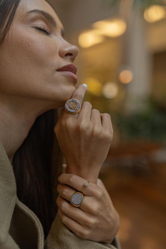 Anel Mini Corações Cravejados Prata 925 Ródio Branco