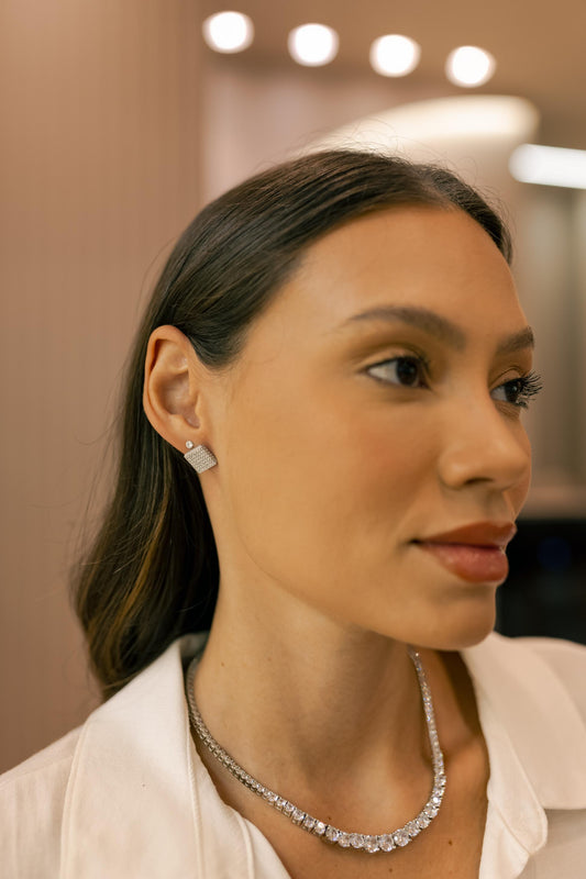 Brinco Redondo Cravejado Baguete Cristal Prata 925