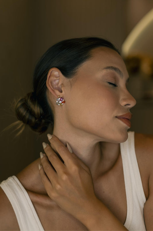 Brinco Argola Cristais Verde e Pérolas Dourado