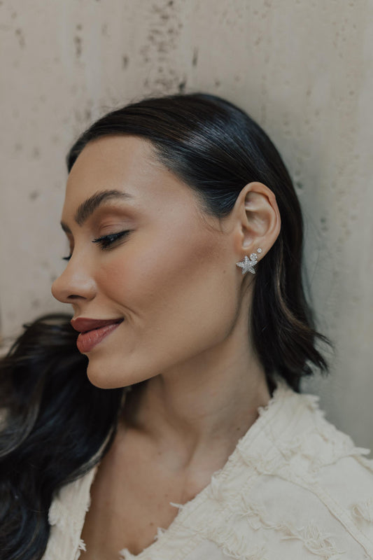 Brinco Estrela Cravejada Ródio Branco