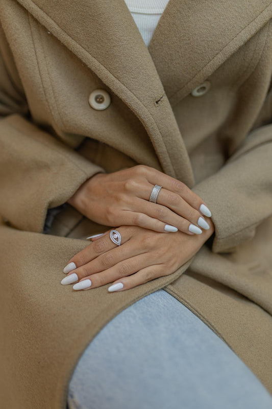 Anel Olho Grego Cravação Pavê Prata Ródio Branco