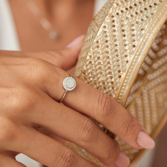 Anel Solitário Redondo Cravejado Prata 925 Ródio Branco