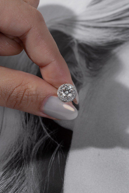 Brinco Oval Base Cravejada Moissanite Prata 925 Ródio Branco