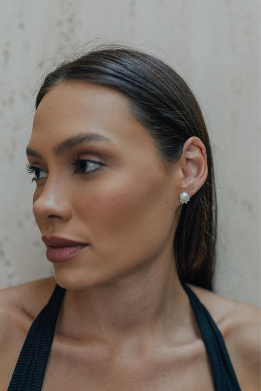 Brinco Pérola de Água Doce com 5 Zircônias Prata 925 Ródio Branco