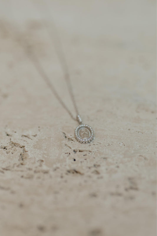 Colar Nossa Senhora das Graças Borda Cravejada Prata 925 Ródio Branco