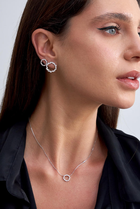 Colar Círculo Vazado Moissanite Prata 925 Ródio Branco