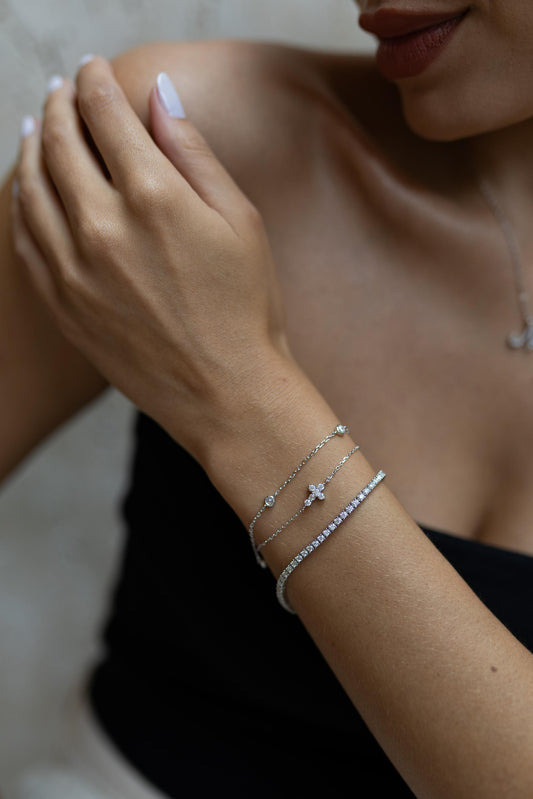 Pulseira Crucifixo Moissanite Prata 925 Ródio Branco