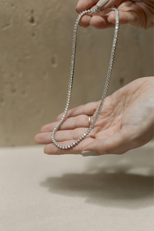 Colar Riviera 3mm 40cm Moissanite Prata 925 Ródio Branco