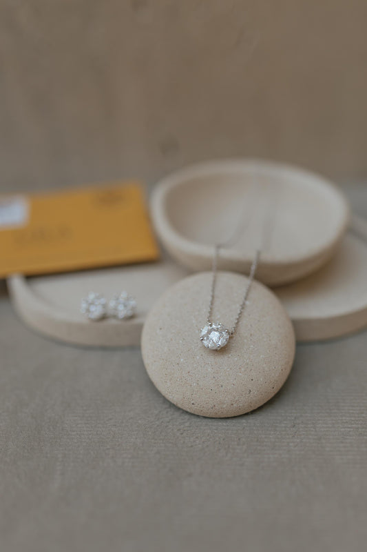 Brinco Flor 5 Pétalas e Pérola Prata 925 Ródio Branco