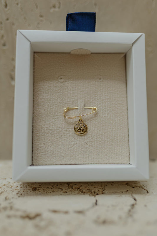 Alfinete Batizado Prata 925 Anjo da Guarda Dourado