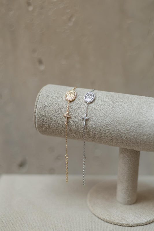 Pulseira Nossa Senhora das Graças Cruz Moissanite Prata 925 Dourado