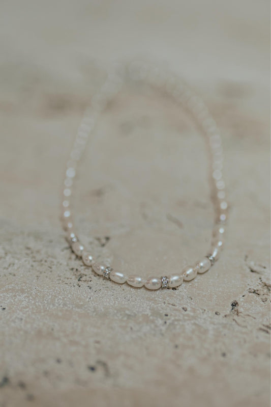 Colar Pérola com Entremeios Cravejados Prata 925 Ródio Branco