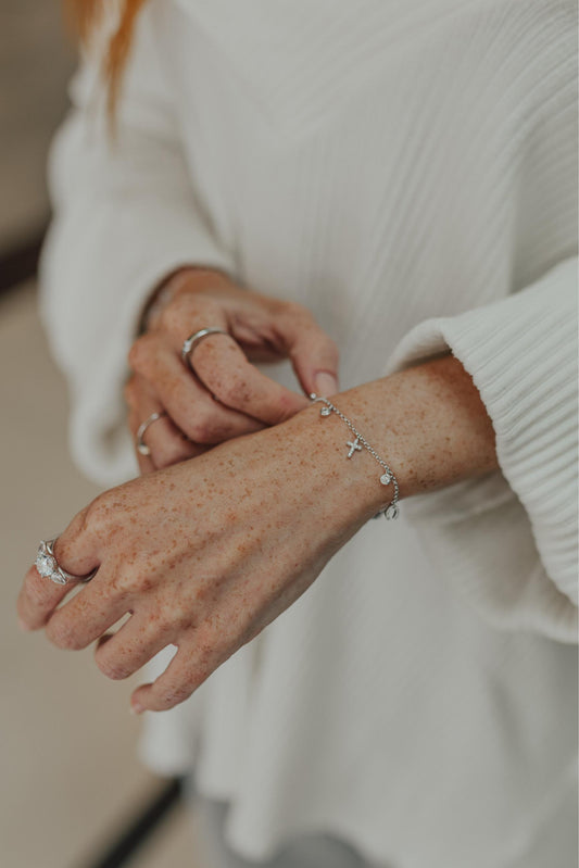Pulseira Nossa Senhora das Graças Cruz Moissanite Prata 925