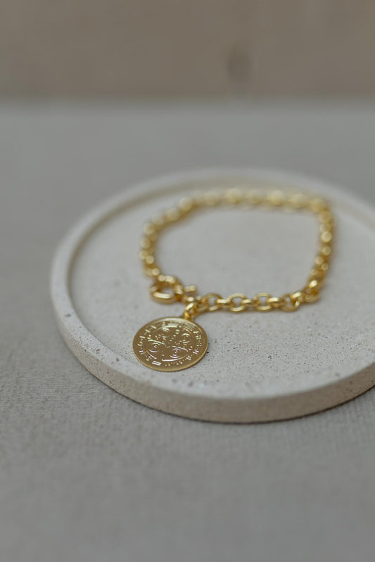 Pulseira Elos Português e Medalha de São Bento Dourado